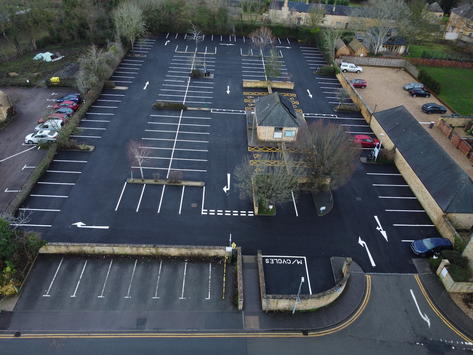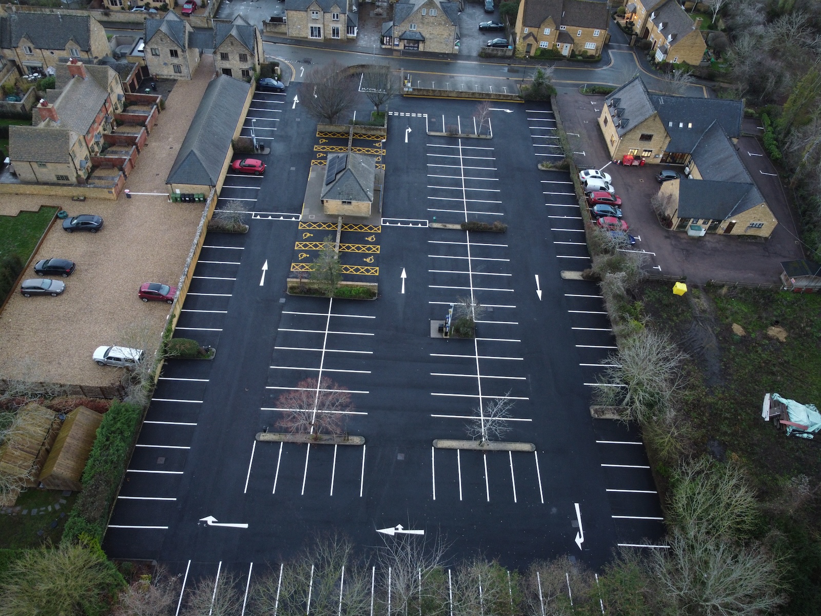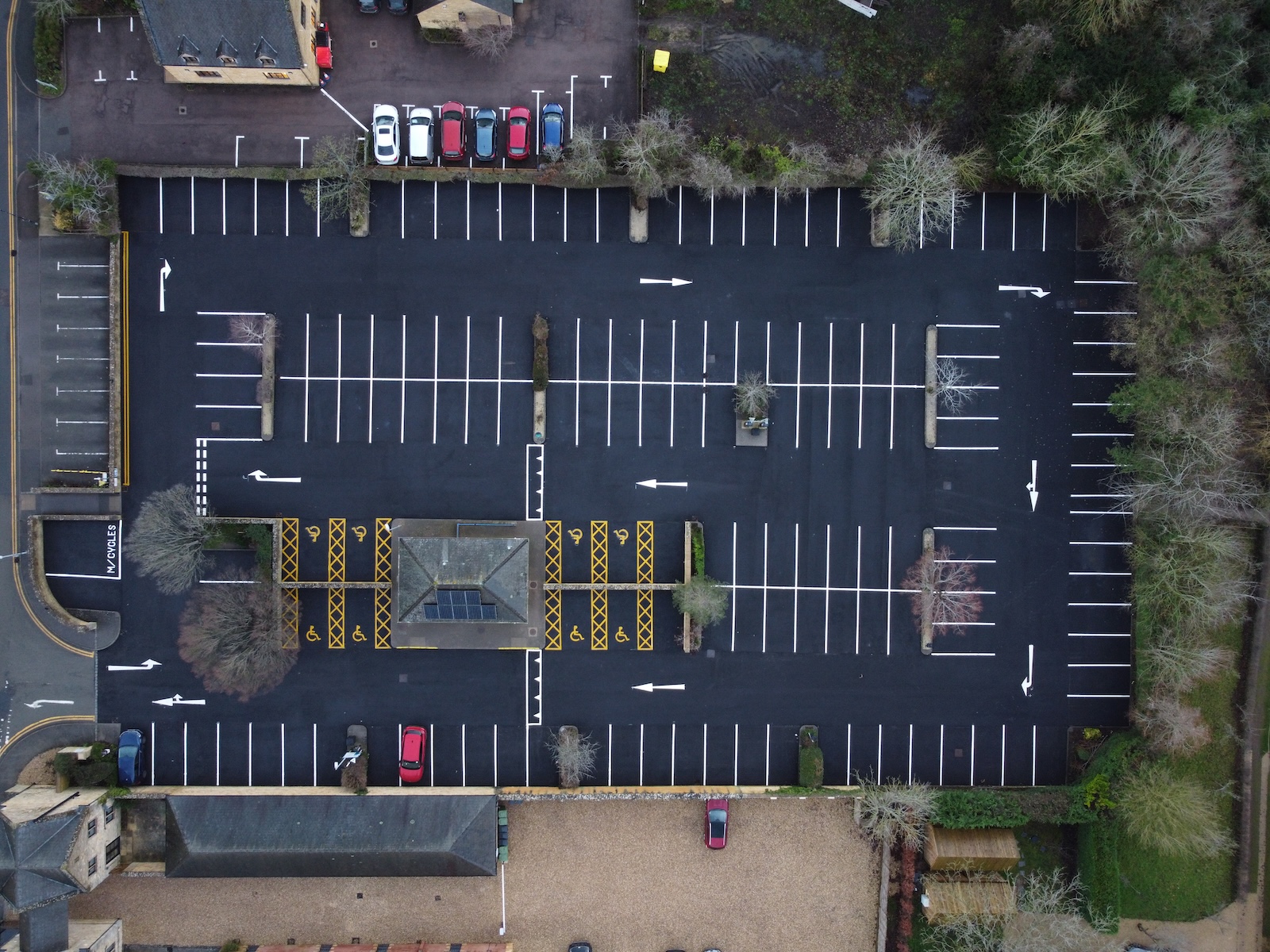 We had a seven-day programme to overlay the entire car park, adjust ironwork and kerbs, reset wall coping stones, jet and clean out gullies, and fully re-white-line the car park.