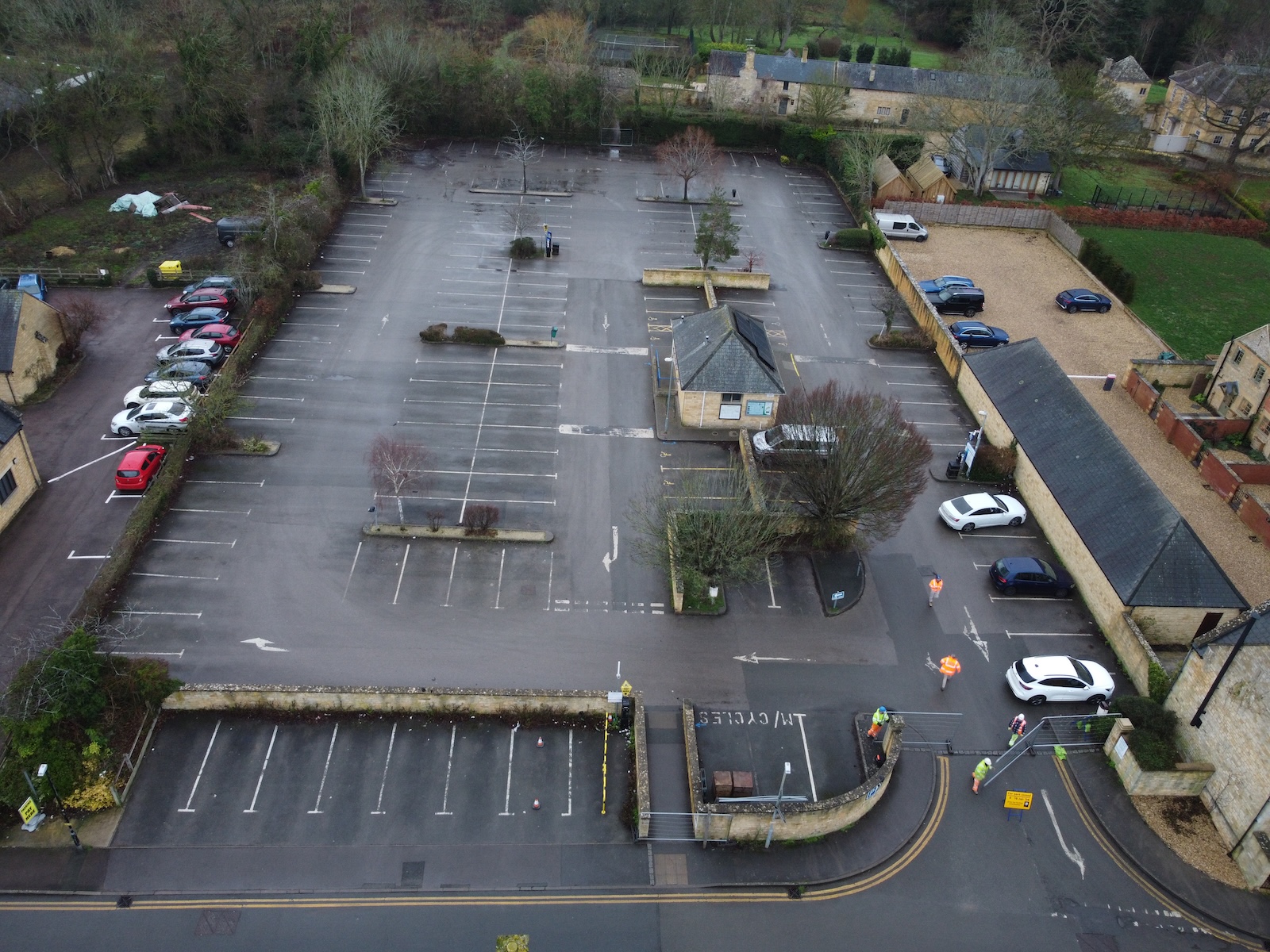 The live car park had to be closed in the very popular tourist village of Broadway. The site also included a public right of way running through the centre of the car park, which required careful management throughout the project.